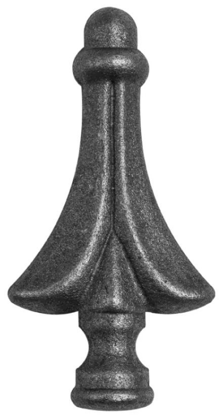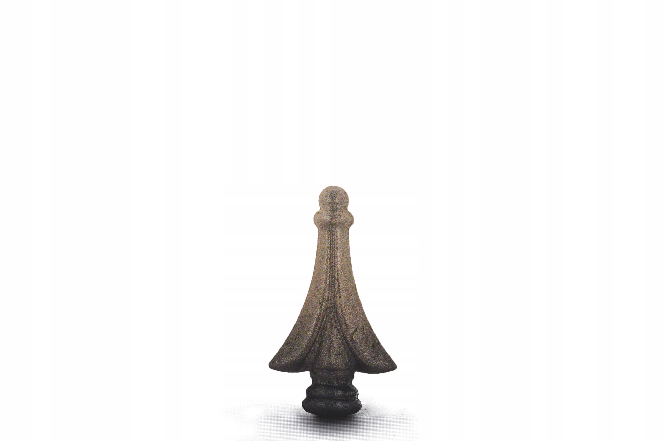 Grot stalowy kuty 13.055 to dekoracyjne zakończenie elementów stalowych przeznaczone do ogrodzeń, bram, furtek oraz krat. Kompaktowy format 80x45 mm sprawia, że dobrze sprawdza się w projektach wymagających mniejszego, ale nadal wyraźnego detalu ozdobnego.