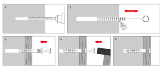 Wystarczy wywiercić otwór, włożyć kołek i wkręcić. Konstrukcja umożliwia montaż jedną ręką, co znacznie przyspiesza prace instalacyjne.