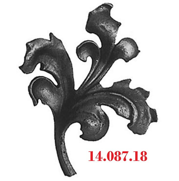 Liść kuty ozdobny 14.087.18 to dekoracyjny element roślinny przeznaczony do bram, ogrodzeń, furtek oraz balustrad. Format 155x140 mm sprawia, że dobrze sprawdza się jako wyraźny detal ozdobny w kompozycjach kutych i projektach z motywem roślinnym.