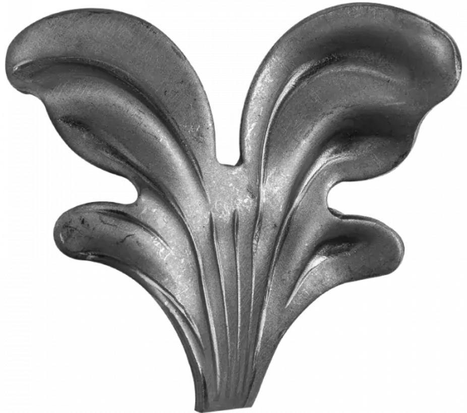 Liść kuty ozdobny 65x62x1,5 mm, 10 szt.. Pakiet dekoracyjnych elementów stalowych do bram, ogrodzeń, furtek i balustrad, przeznaczony do kompozycji roślinnych i kutych detali wykończeniowych.