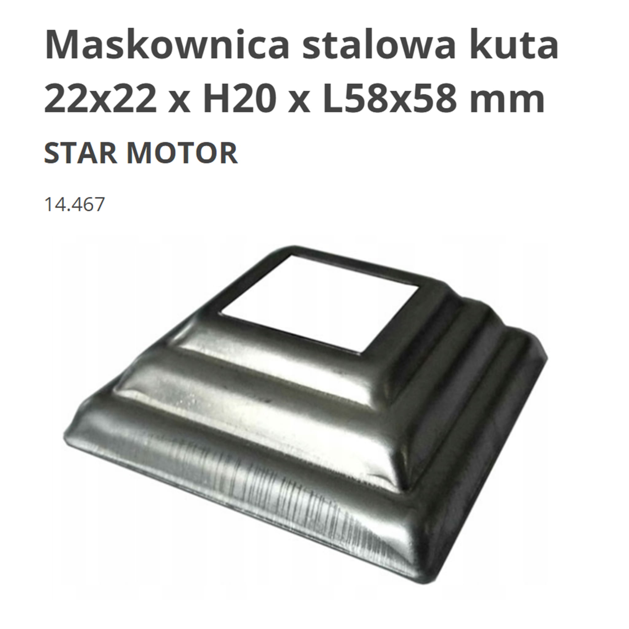 Maskownica stalowa kuta 22x22 x H20 x 58x58 mm - 14.467