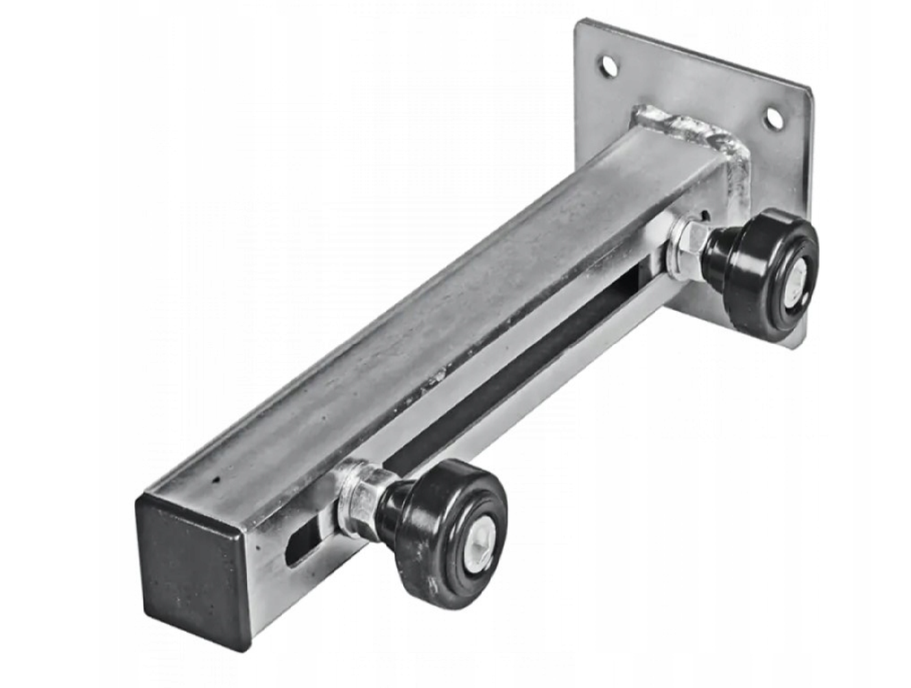 Prowadzenie górne regulowane 60.052-2 do bram przesuwnych samonośnych. Dwie rolki z tworzywa stabilizują skrzydło w pionie, a ocynkowana konstrukcja zwiększa trwałość i odporność na warunki zewnętrzne.
