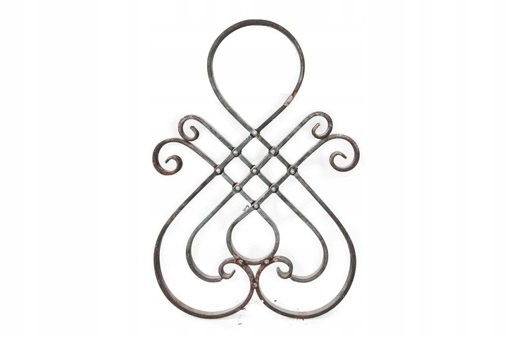 Rozeta ozdobna stalowa kuta 03.574 to dekoracyjny element przeznaczony do bram, ogrodzeń, balustrad oraz innych konstrukcji stalowych. Format 575x400 mm sprawia, że dobrze sprawdza się jako większe, ozdobne wypełnienie przęsła lub centralny akcent w konstrukcjach o klasycznym charakterze.