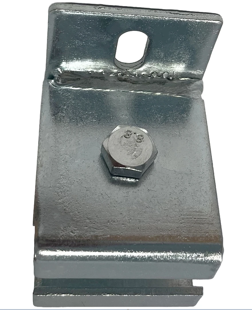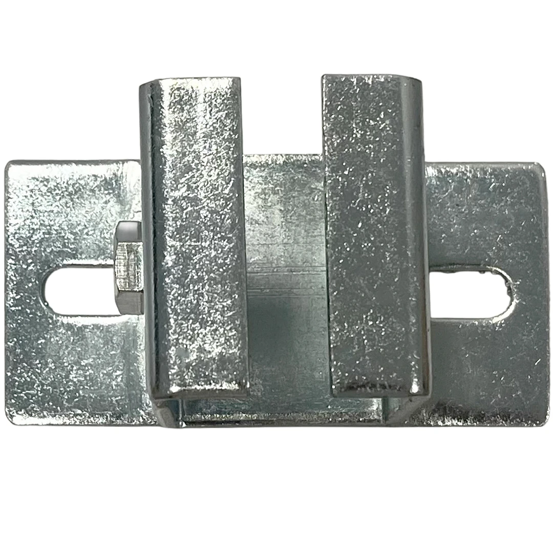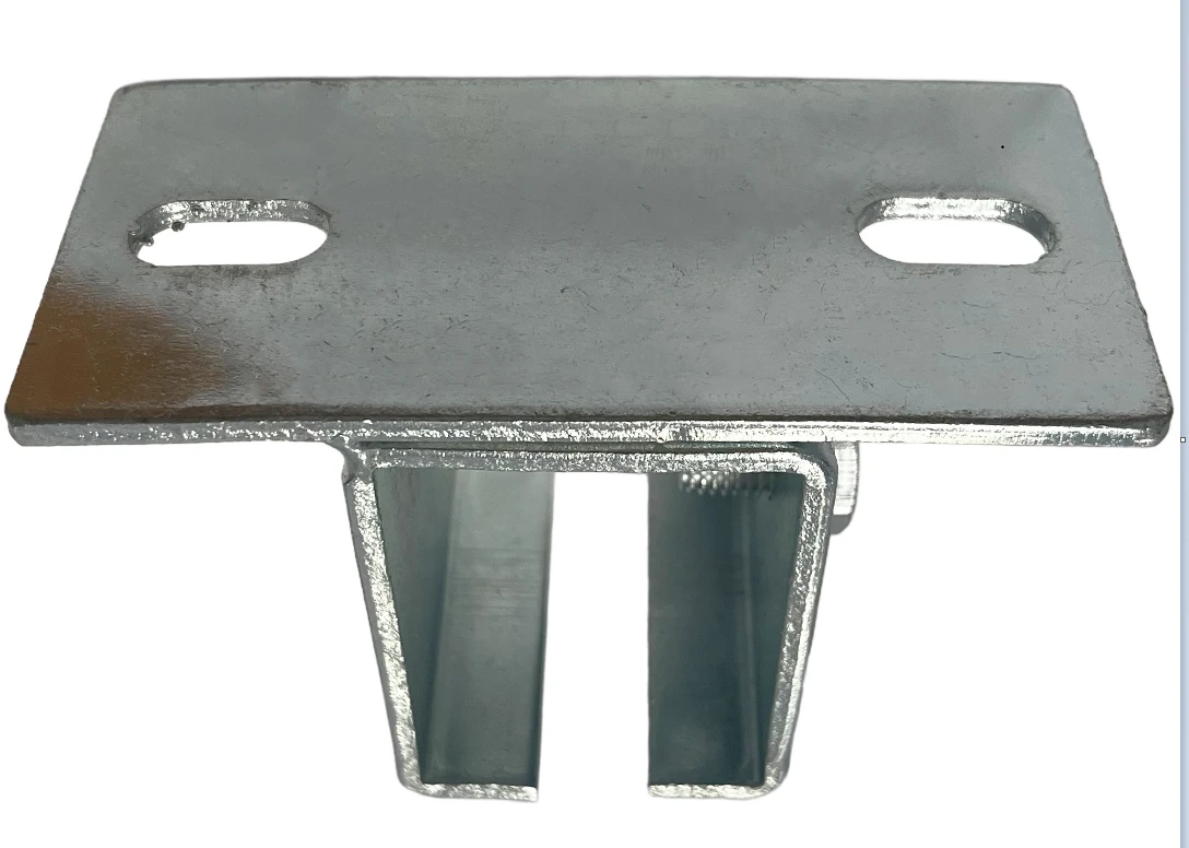 Wieszak sufitowy do mocowania szyny 33 x 34 mm w systemie bramy podwieszanej. Stalowy uchwyt z ocynkiem galwanicznym ma podłużne otwory montażowe, które ułatwiają ustawienie położenia szyny.