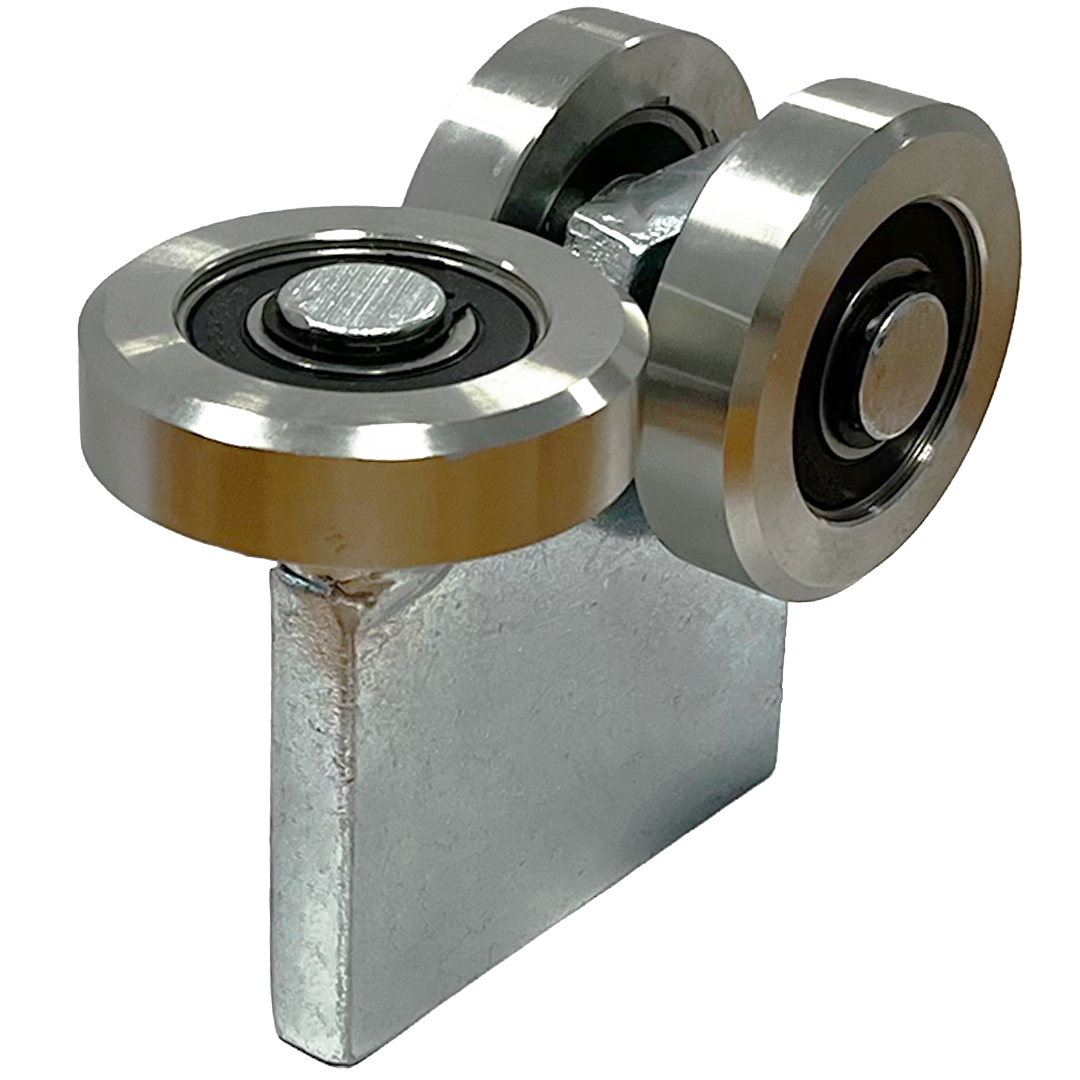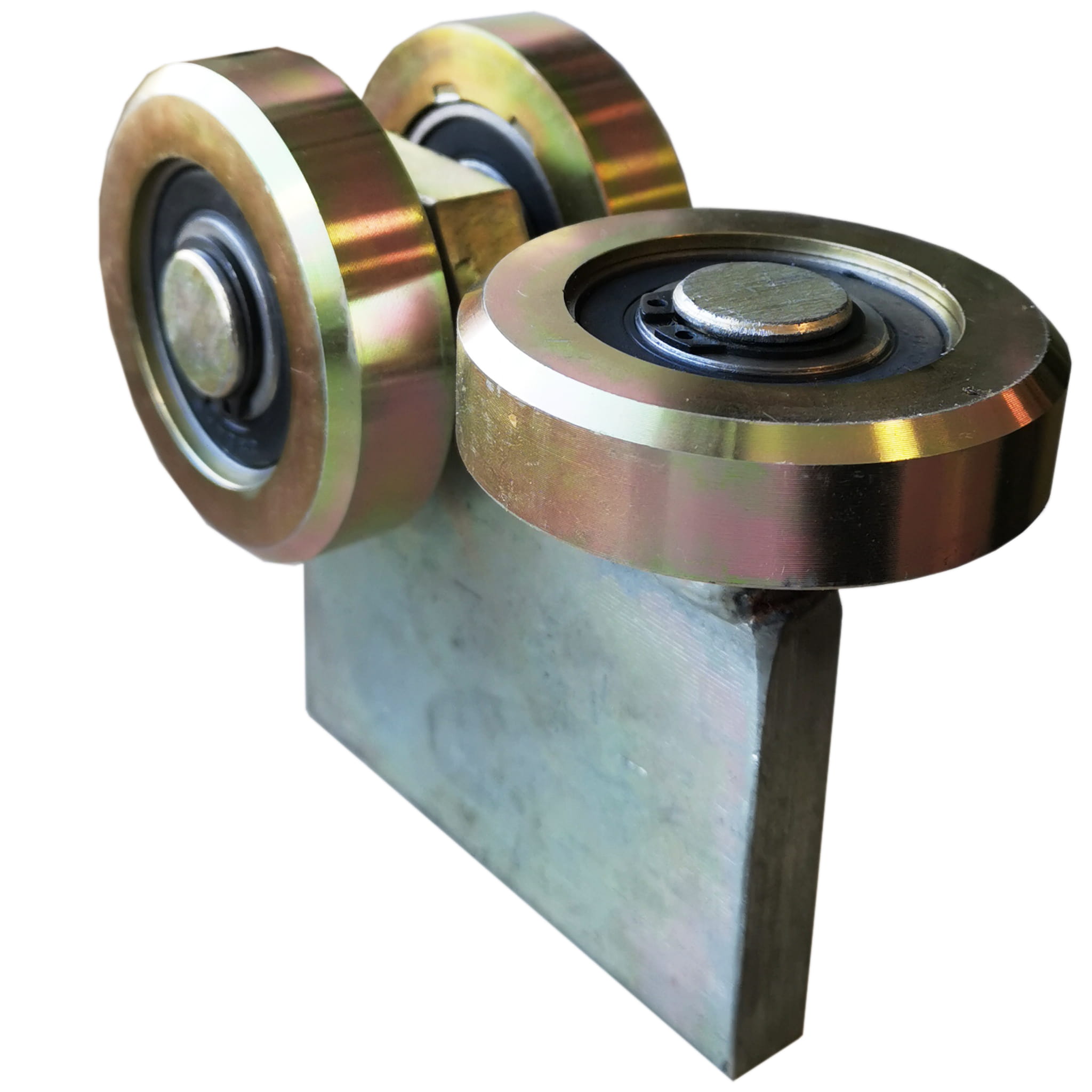 Wózek 3-rolkowy 60.004PS do bram przesuwnych, przeznaczony do profilu 80 mm. Wariant do spawania ze stali surowej, o nośności do 350 kg i konstrukcji przystosowanej do trwałego połączenia z elementem nośnym.