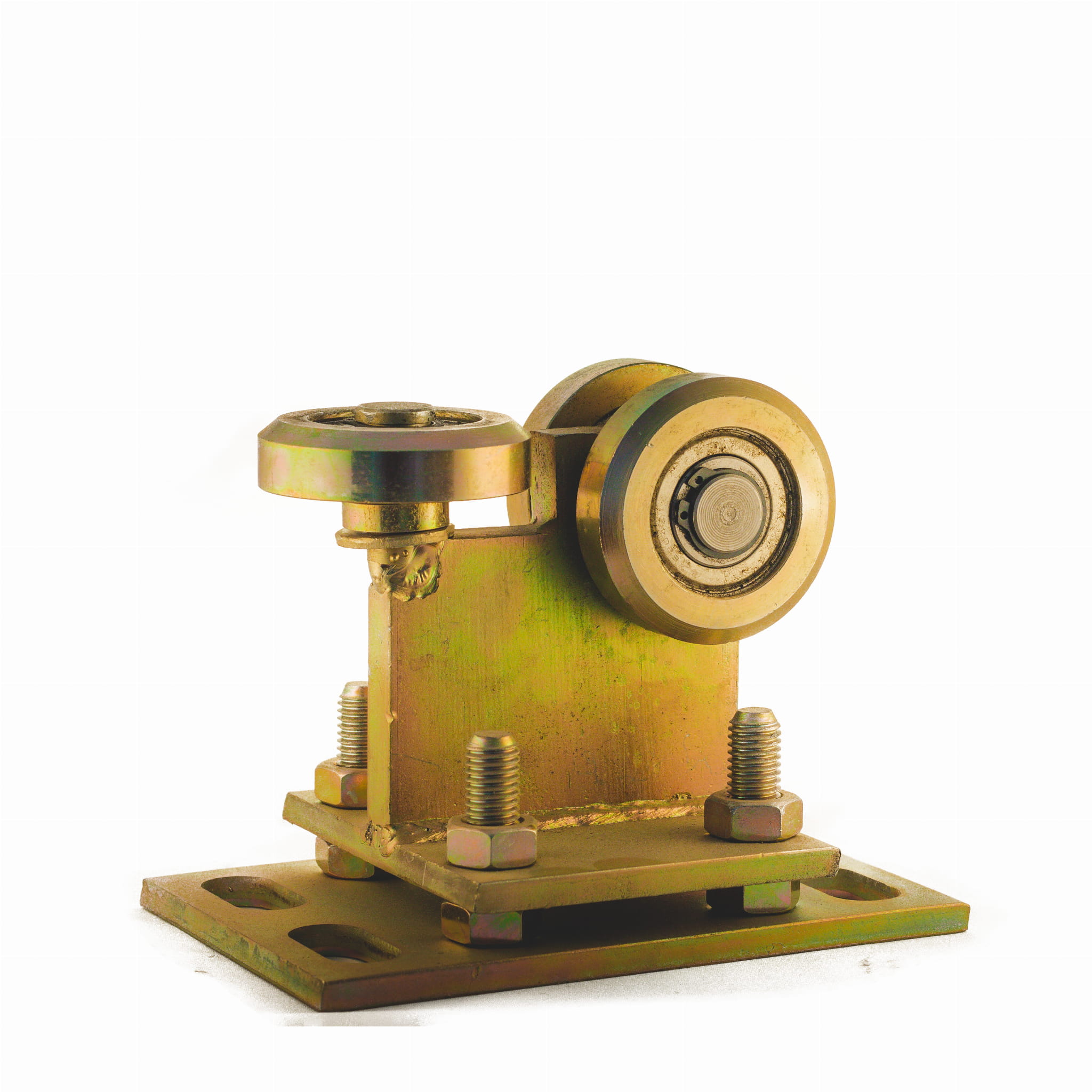Model wykonano ze stali S235 z cynkowaniem ogniowym. Trzy stalowe rolki łożyskowane są przeznaczone do pracy w układzie jezdnym bramy przesuwnej.