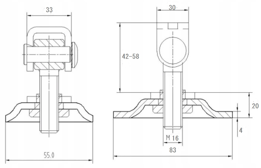 Profesjonalne zawiasy do bram regulowane z podstawą montażową 83x55mm i śrubą regulacyjną M16. Ocynkowane, odporne na korozję, idealne do bram skrzydłowych i furtek. Umożliwiają precyzyjną regulację bez konieczności spawania. Nośność do 75kg na zawias. Montaż do słupków metalowych lub murowanych.